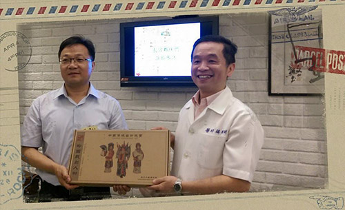 演講後, 團長薄濤副局長致贈 中國傳統藝術瑰寶『五路財神』浮雕藝術品,並熱情邀請Dr.Yang 參訪指導